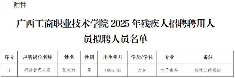 附件:廣西工商職業(yè)技術(shù)學(xué)院2025年殘疾人招聘聘用人員擬聘人員名單