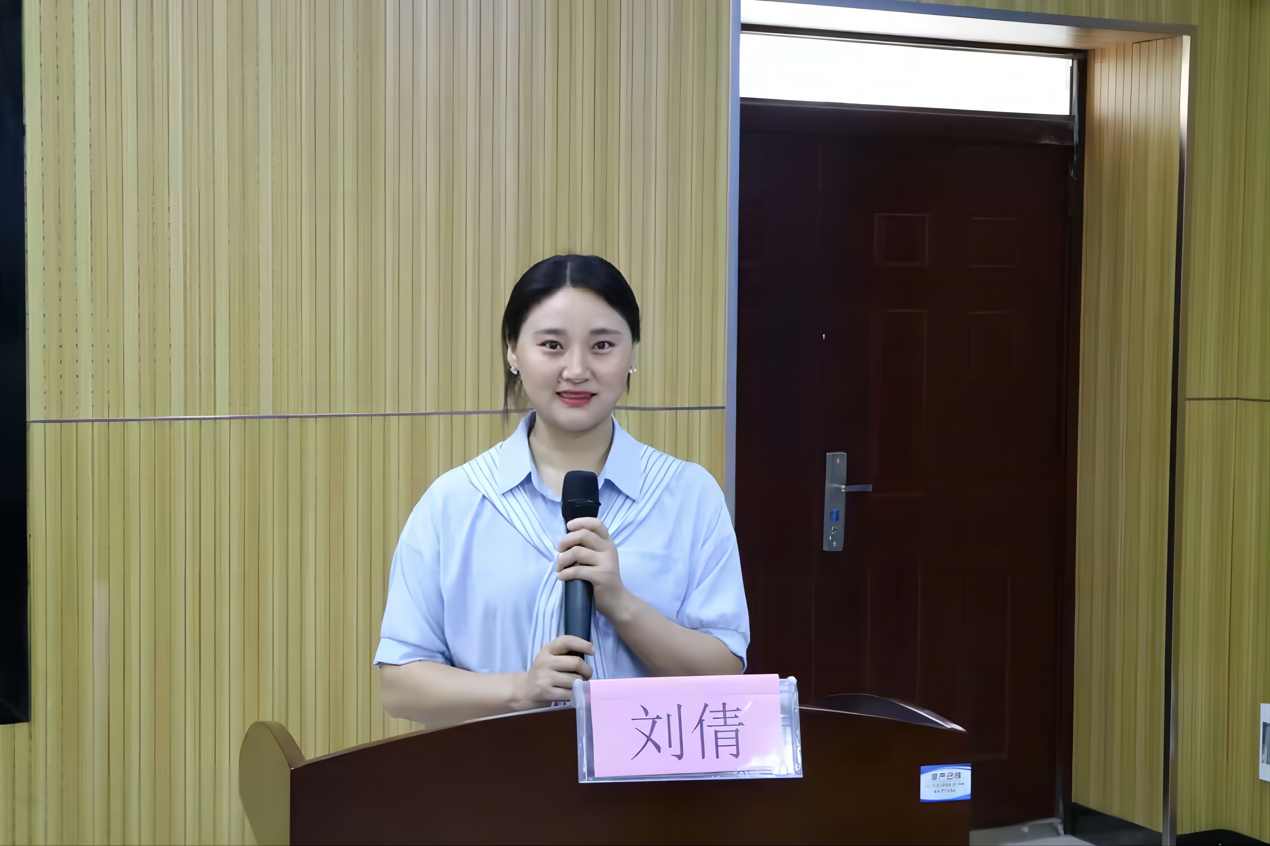 圖為: 會計學院團委副書記劉倩老師講話