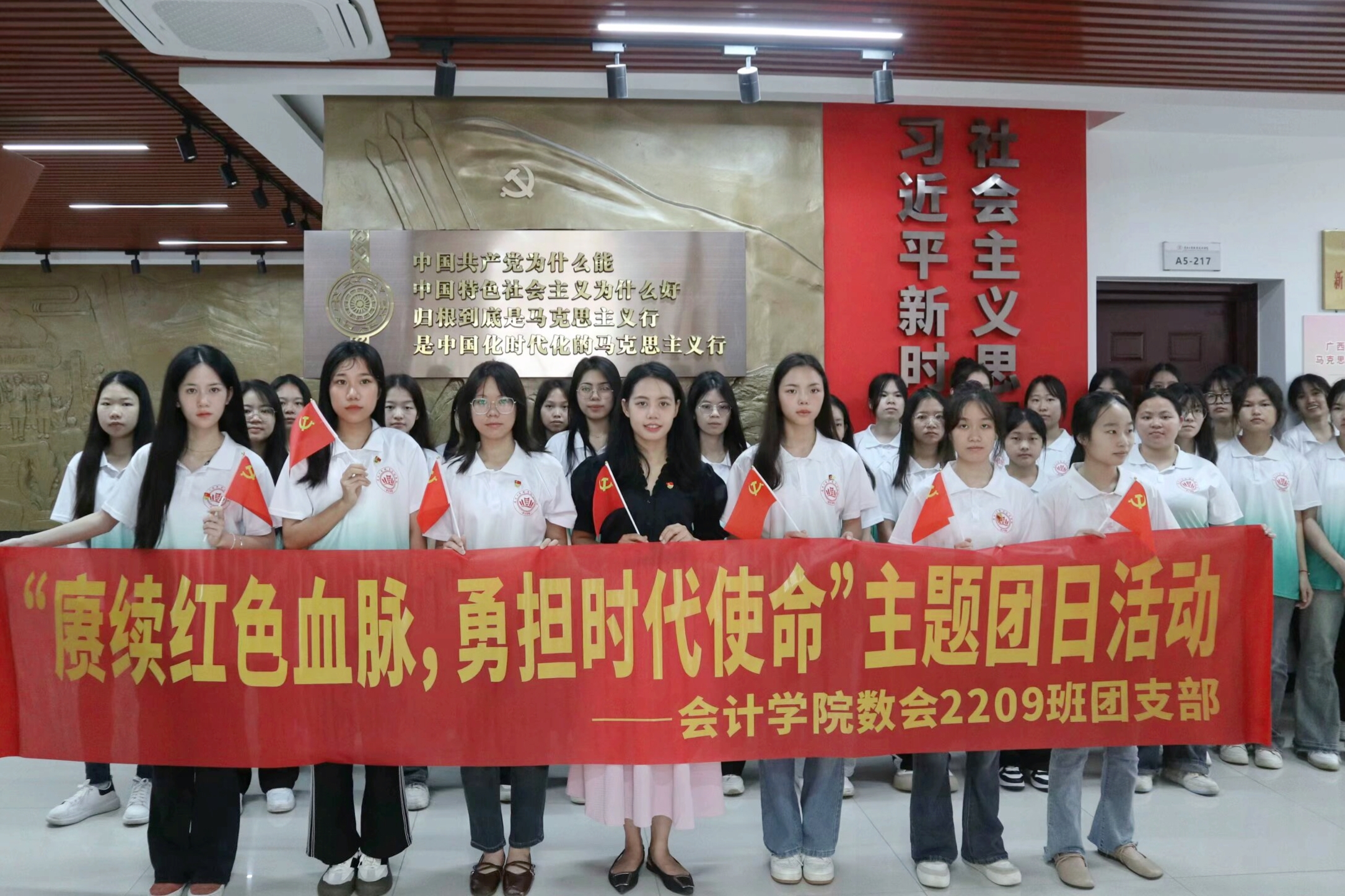同學(xué)恰少年,理想正青春。為慶祝中國(guó)共產(chǎn)黨成立103周年,引導(dǎo)青年學(xué)生學(xué)習(xí)黨的基本理論、基本路線、基本方略,鼓勵(lì)他們勇?lián)鷷r(shí)代責(zé)任,努力成長(zhǎng)為有理想、有擔(dān)當(dāng)?shù)男聲r(shí)代青年,2024年6月22-27日,會(huì)計(jì)學(xué)院數(shù)會(huì)2209班在武鳴校區(qū)開(kāi)展“賡續(xù)紅色血脈,勇?lián)鷷r(shí)代使命”主題團(tuán)日系列活動(dòng)。