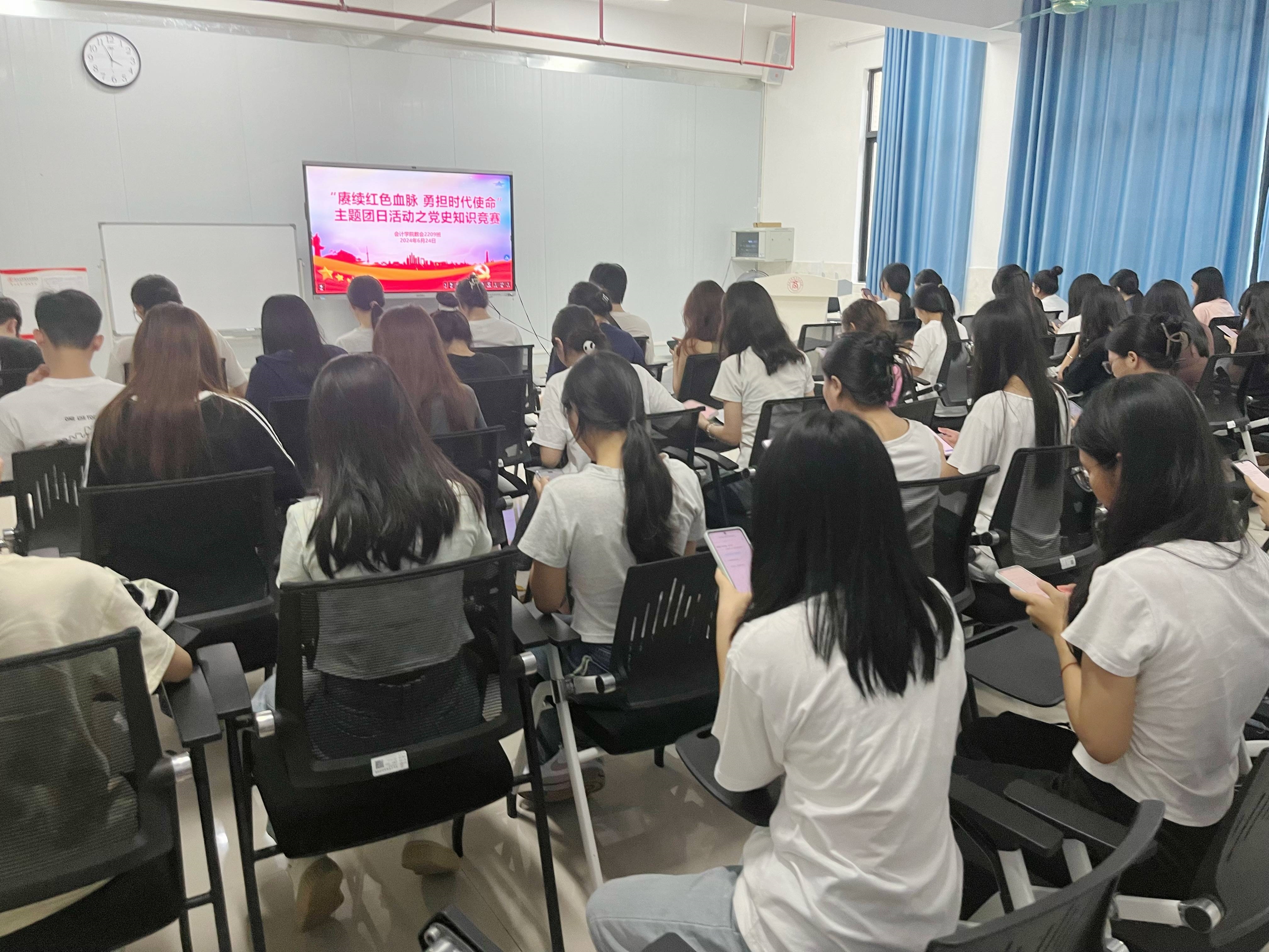2024年6月24日,在A5-203同學(xué)們采用學(xué)習(xí)通答題的方式開(kāi)展黨史知識(shí)競(jìng)賽,促進(jìn)團(tuán)員青年進(jìn)一步學(xué)習(xí)黨史知識(shí),深化青年學(xué)生對(duì)黨史的理解與認(rèn)識(shí)。