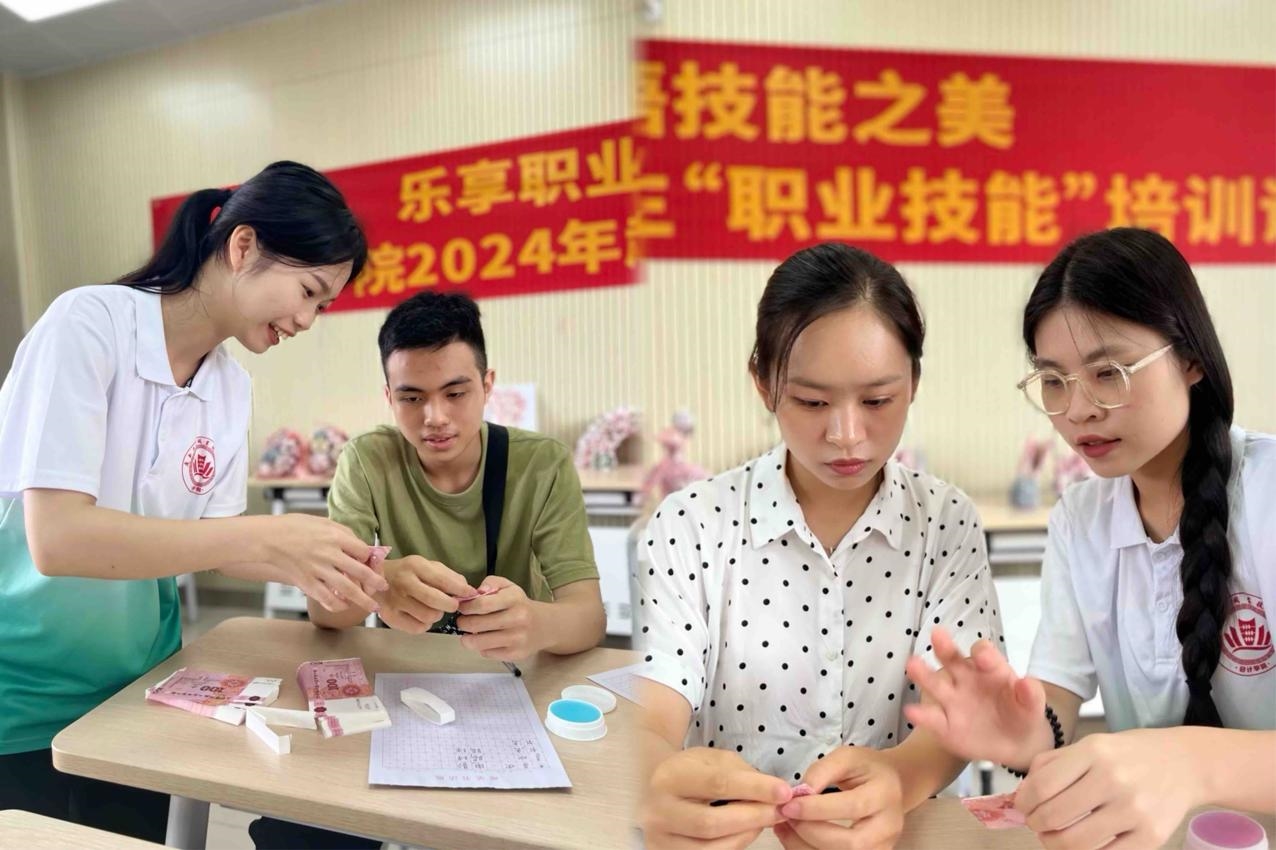 我院學生佩服外國朋友在非母語和陌生環(huán)境的情況下,積極參與討論、大膽展示的勇氣和擔當。外國學生也紛紛表示,第一次參加這種形式的研學活動,非常新鮮有趣,既收獲了技能知識,同時也感受到中國老師和同學無處不在的熱情和細致入微的關(guān)懷,與大家結(jié)下了深厚的友情。研學結(jié)束,我院學生向外國朋友贈送了用“人民幣練功劵”折成的紙花,寓意著美好祝福與深厚的友誼。帶隊的越南教師表示,此次研學活動不僅能增進學生們的見識,也是對越中傳統(tǒng)友誼的傳承。