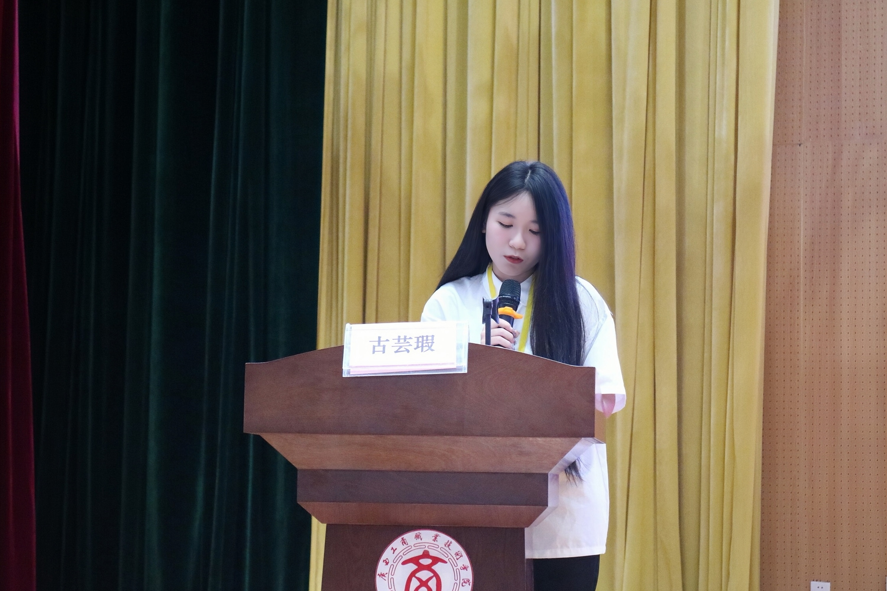 圖為: 會計學(xué)院團(tuán)委、學(xué)生會執(zhí)行主席候選人李雪怡講話