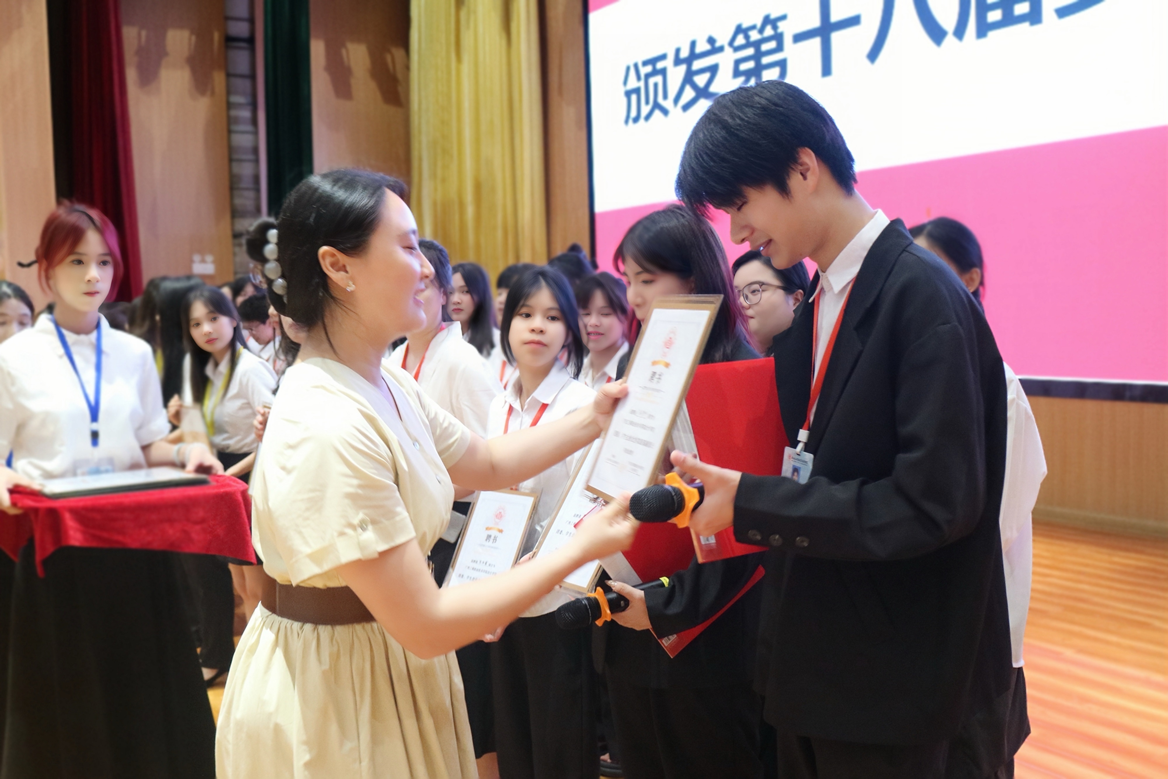 圖為: 劉倩老師為第十八屆委員頒發(fā)任職聘書