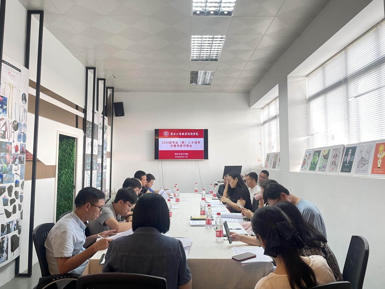 2024年6月11日下午,信息與設(shè)計(jì)學(xué)院在鵬飛校區(qū)2713工作室召開2024級(jí)人才培養(yǎng)方案專家評(píng)審會(huì)。參會(huì)的校外專家有廣西機(jī)電職業(yè)技術(shù)學(xué)院教授劉永福、廣西機(jī)電職業(yè)技術(shù)學(xué)院高級(jí)工藝美術(shù)師蘭育平、廣西職業(yè)技術(shù)學(xué)院教授潘小樓、廣西職業(yè)技術(shù)學(xué)院副教授劉斌、廣西數(shù)廣邁越科技有限公司總監(jiān)吳嘉斯、青軟創(chuàng)新科技集團(tuán)股份有限公司總監(jiān)王建松、廣西塔易信息技術(shù)有限公司李世旺等7人,信息與設(shè)計(jì)學(xué)院參會(huì)人員有院長張麗勇,教學(xué)副院長唐燕雯,各專業(yè)帶頭人趙明艷、段小斌、段忠祥、廖美紅、李瑩、朱明秀、莫德成和青年教師李天露等10人。