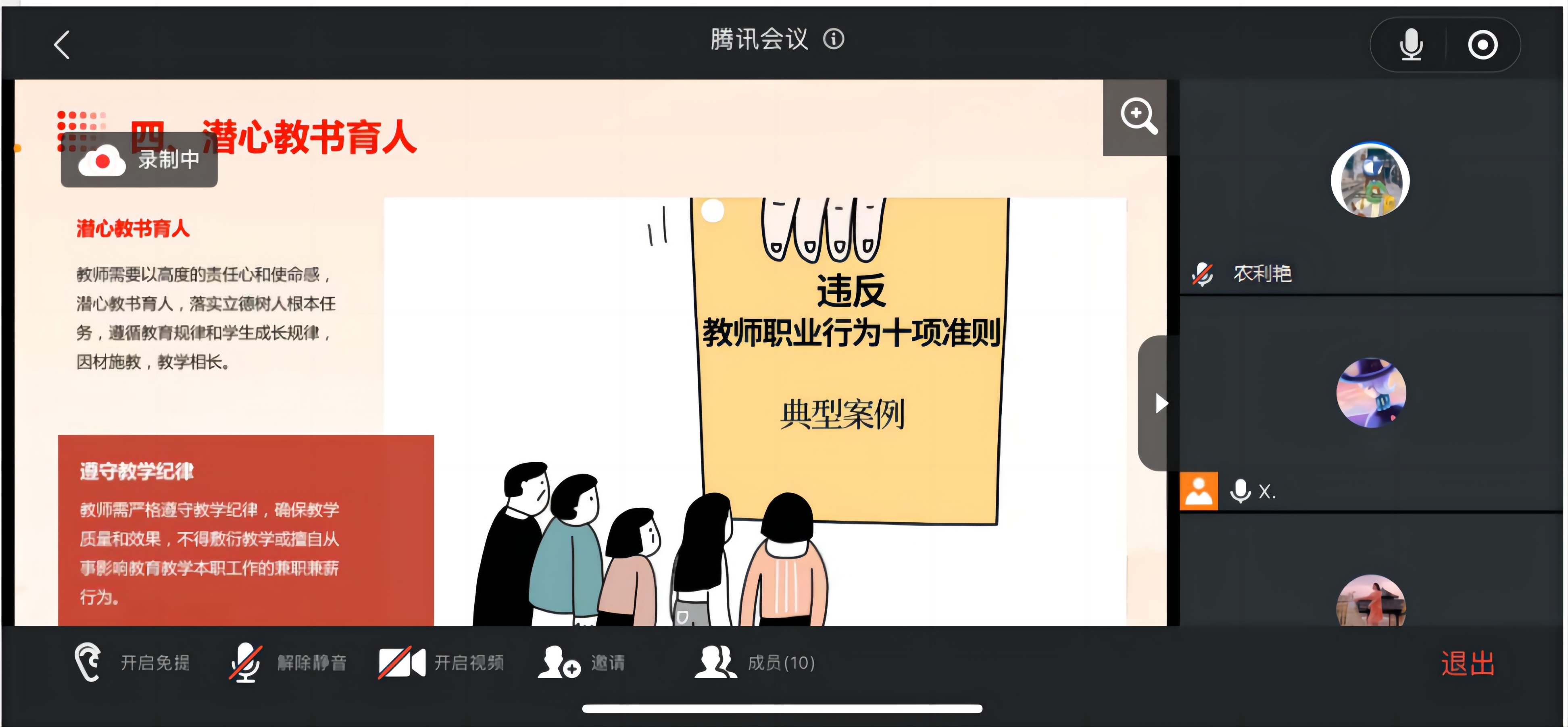 座談會(huì)上,粟衛(wèi)紅院長(zhǎng)首先領(lǐng)學(xué)了《新時(shí)代高校教師職業(yè)行為十項(xiàng)準(zhǔn)則》(以下簡(jiǎn)稱《準(zhǔn)則》),緊緊圍繞重要意義、豐富內(nèi)涵、實(shí)踐要求對(duì)該《準(zhǔn)則》進(jìn)行逐條逐句地解讀;與外聘教師共同學(xué)習(xí)了《廣西工商職業(yè)技術(shù)學(xué)院教師師德考核辦法》。粟衛(wèi)紅院長(zhǎng)還列舉了高校教師違反《準(zhǔn)則》和師德師風(fēng)的現(xiàn)實(shí)案例,警示全體外聘教師牢記教書育人使命,在認(rèn)真完成好教學(xué)任務(wù)的基礎(chǔ)上,更要恪守教師職業(yè)操守,弘揚(yáng)優(yōu)良師德師風(fēng),始終把紀(jì)律作為懸在頭頂?shù)摹叭呃麆Α?,常懷敬畏之心,常修廉潔之德,?jiān)持以德立身、以德立學(xué)、以德施教、以德育德,自覺扣好廉潔從教“第一粒扣子”。