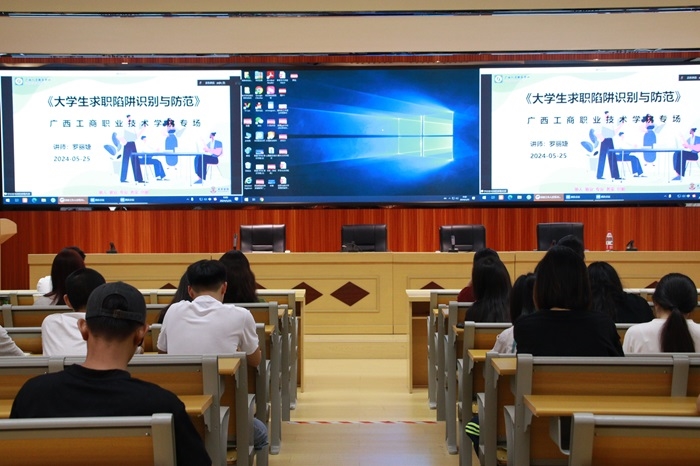 根據(jù)團(tuán)區(qū)委服務(wù)大學(xué)生就業(yè)引航計(jì)劃安排,學(xué)院團(tuán)委邀請(qǐng)企業(yè)專家唐麗婕于5月25日上午9點(diǎn)在武鳴校區(qū)開(kāi)展《大學(xué)生求職陷阱套路》講座,鵬飛校區(qū),中堯校區(qū)采取線上收聽(tīng)。??