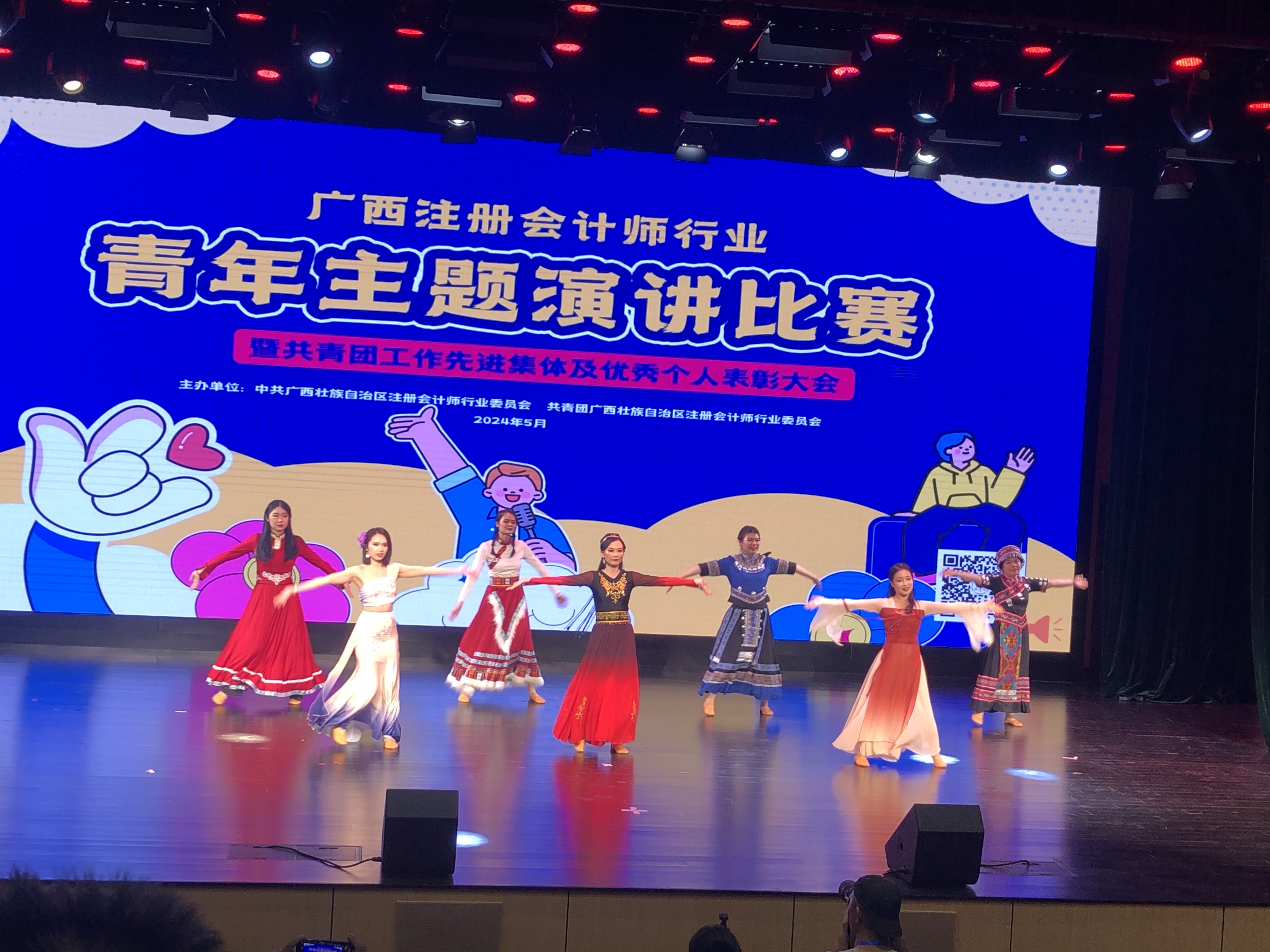 為了加強(qiáng)學(xué)校與廣西注冊會計師協(xié)會的合作,充實學(xué)生知識,豐富協(xié)會成員的眼界。2024年5月29日下午學(xué)院會計協(xié)會優(yōu)秀代表在陳錦齊老師的帶領(lǐng)下,來到廣西大學(xué)作為受邀嘉賓出席“廣西注冊會計師行業(yè)青年主題演講比賽暨共青團(tuán)工作先進(jìn)集體及優(yōu)秀個人表彰大會”。