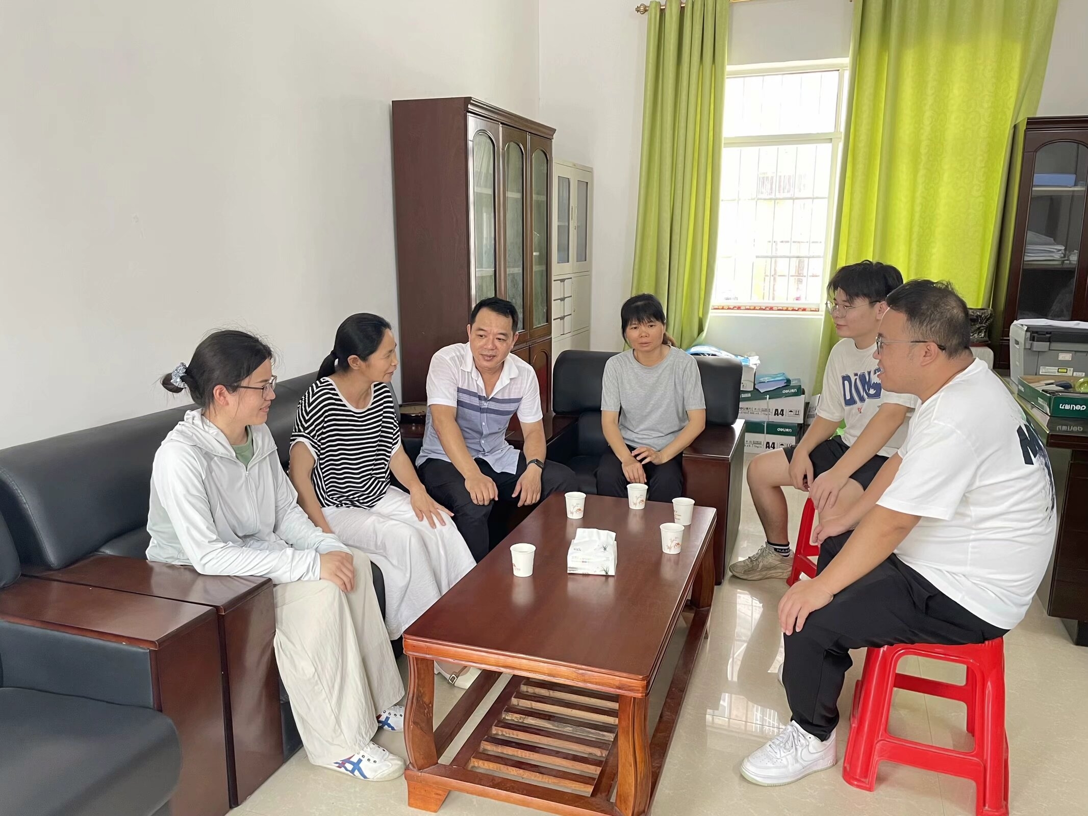 (圖1 李朝鋒書記一行與靖西小學(xué)羅梅校長了解防溺水教育情況)