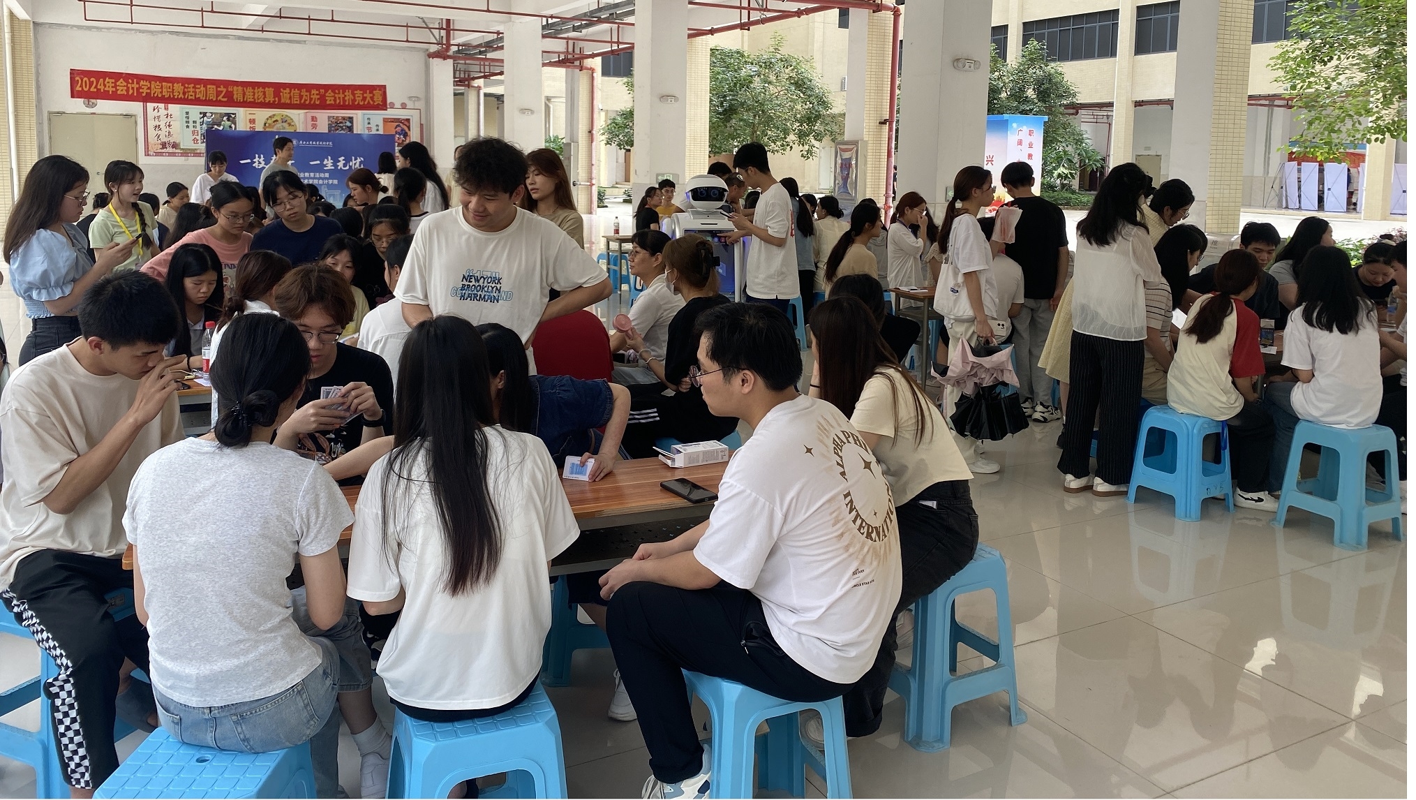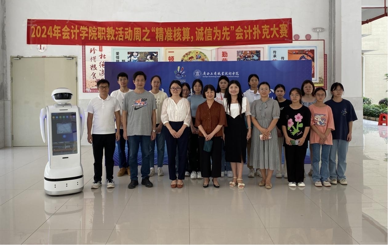活動周中最引人注目的環(huán)節(jié)莫過于與智慧稅務(wù)實訓(xùn)中心的智能機(jī)器人進(jìn)行互動。這款機(jī)器人內(nèi)含會計知識問答功能,通過大屏顯示與智能語音交互技術(shù)自然迅速解答疑問。它借助數(shù)字化教學(xué)環(huán)境,直觀展示會計知識,引導(dǎo)學(xué)生創(chuàng)新思維和實踐。同學(xué)們通過模擬稅務(wù)場景,提升實操能力,深入理解稅務(wù)工作。????此外,同學(xué)們親身感受了人工智能在職業(yè)教育中的應(yīng)用,體驗到科技帶來的便捷和高效,對未來職場充滿期待。這一創(chuàng)新教學(xué)方式得到了學(xué)生的高度認(rèn)可,認(rèn)為它極大地深化了稅務(wù)實操的理解,為未來的職業(yè)發(fā)展奠定了堅實基礎(chǔ)。???“精準(zhǔn)核算,誠信為先”會計科目撲克比賽同樣吸引了眾多學(xué)生的目光,選手們分組競技,選手們在緊張刺激的比賽中需迅速分析局勢、制定戰(zhàn)略,靈活調(diào)整戰(zhàn)術(shù),充分展現(xiàn)了選手們的專業(yè)素養(yǎng)和心理素質(zhì)。
