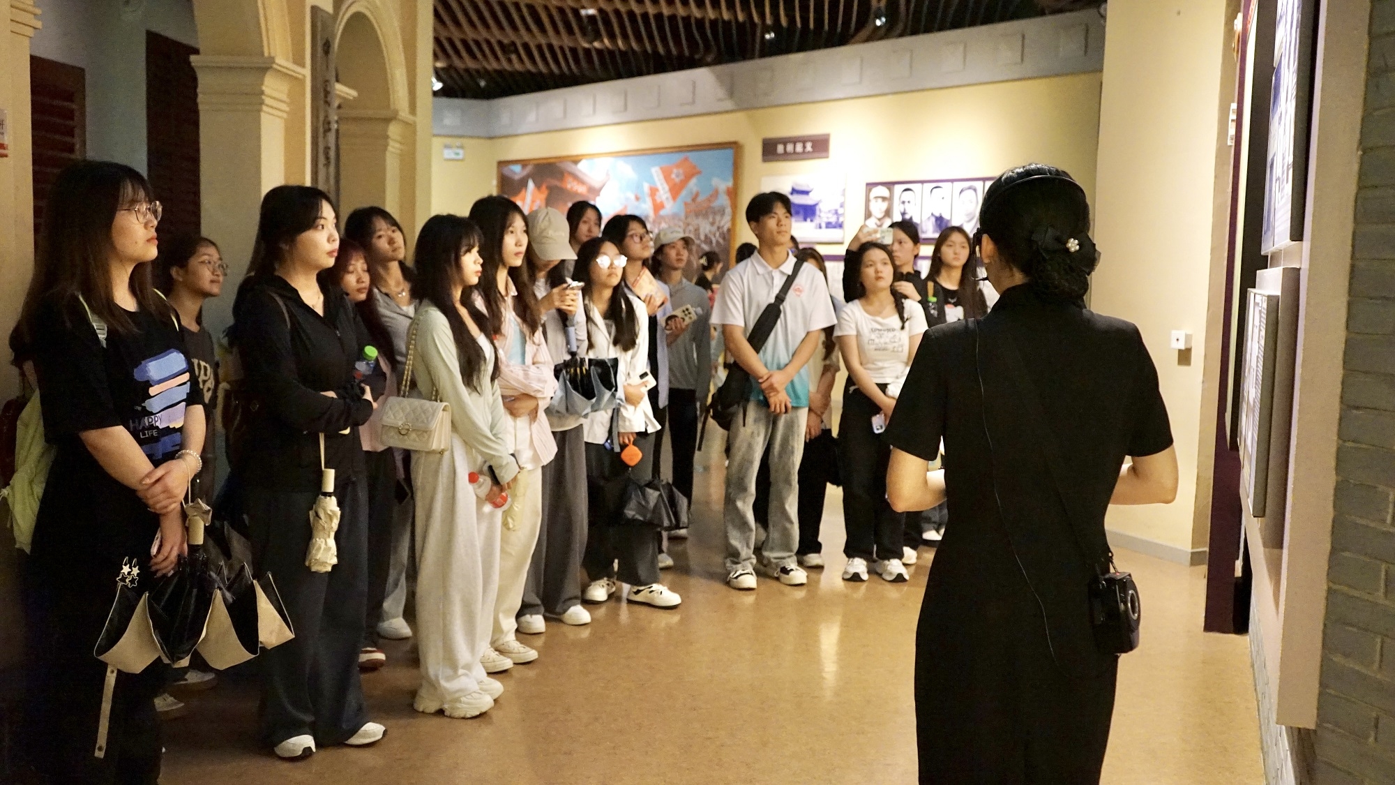 圖2:同學(xué)們在紀(jì)念館內(nèi)聆聽講解