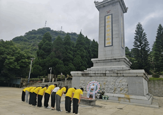 首先,我們來(lái)到廣西靖西市烈士陵園紀(jì)念碑舉行獻(xiàn)花圈、默哀儀式。老師帶領(lǐng)同學(xué)們向?qū)υ阶孕l(wèi)反擊戰(zhàn)革命烈士紀(jì)念碑獻(xiàn)上花圈,隨后,大家橫排一行,向革命烈士紀(jì)念碑默哀三分鐘并鞠躬表達(dá)敬意。和平來(lái)之不易,站在神圣的革命烈士紀(jì)念碑前,我們?yōu)槭匦l(wèi)祖國(guó)南疆的人民英雄感到自豪,是他們用鮮血捍衛(wèi)了我國(guó)邊疆的安寧。