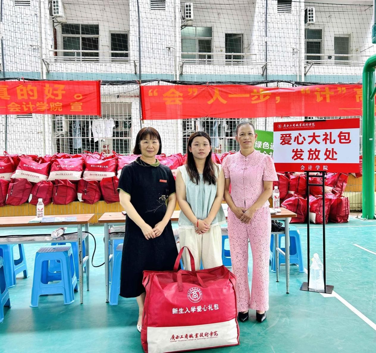 金秋送爽喜迎八方學(xué)子,丹桂飄香共祝美好未來。會計學(xué)院迎來了2024級新生,同學(xué)滿載喜悅和祝福,懷揣理想和憧憬,走進校園。學(xué)校為家庭經(jīng)濟困難新生準備了“愛心大禮包”,為新生送上入校后的第一份溫暖。9月6日,我院黨總支書記、院長粟衛(wèi)紅以及副院長譚玉娥參加了此次活動,分別在中堯校區(qū)及武鳴校區(qū)給新生們發(fā)放學(xué)校精心準備的愛心大禮包。