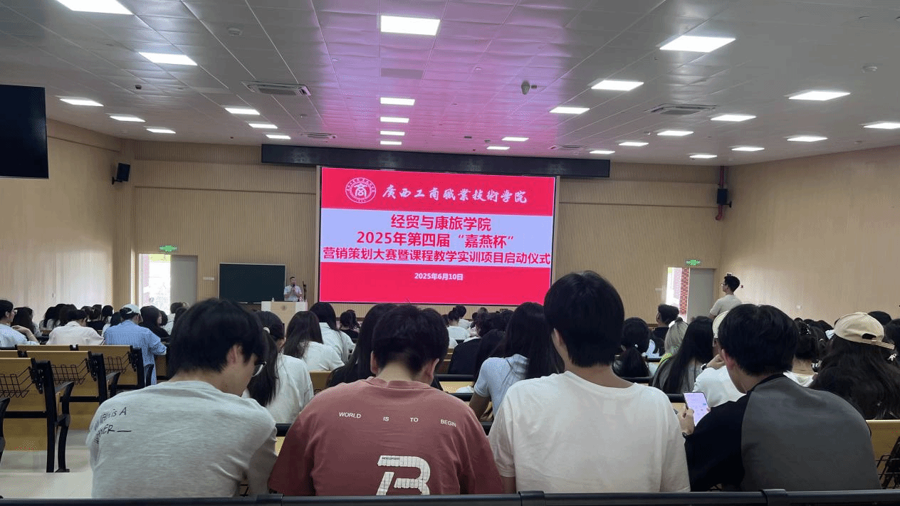 2025年6月10日,廣西工商職業(yè)技術(shù)學(xué)院經(jīng)貿(mào)與康旅學(xué)院2025年第四屆“嘉燕杯”營(yíng)銷策劃大賽暨課程教學(xué)實(shí)訓(xùn)項(xiàng)目啟動(dòng)儀式在武鳴校區(qū)舉行。校企雙方代表、師生兩百多人共同參與活動(dòng)。