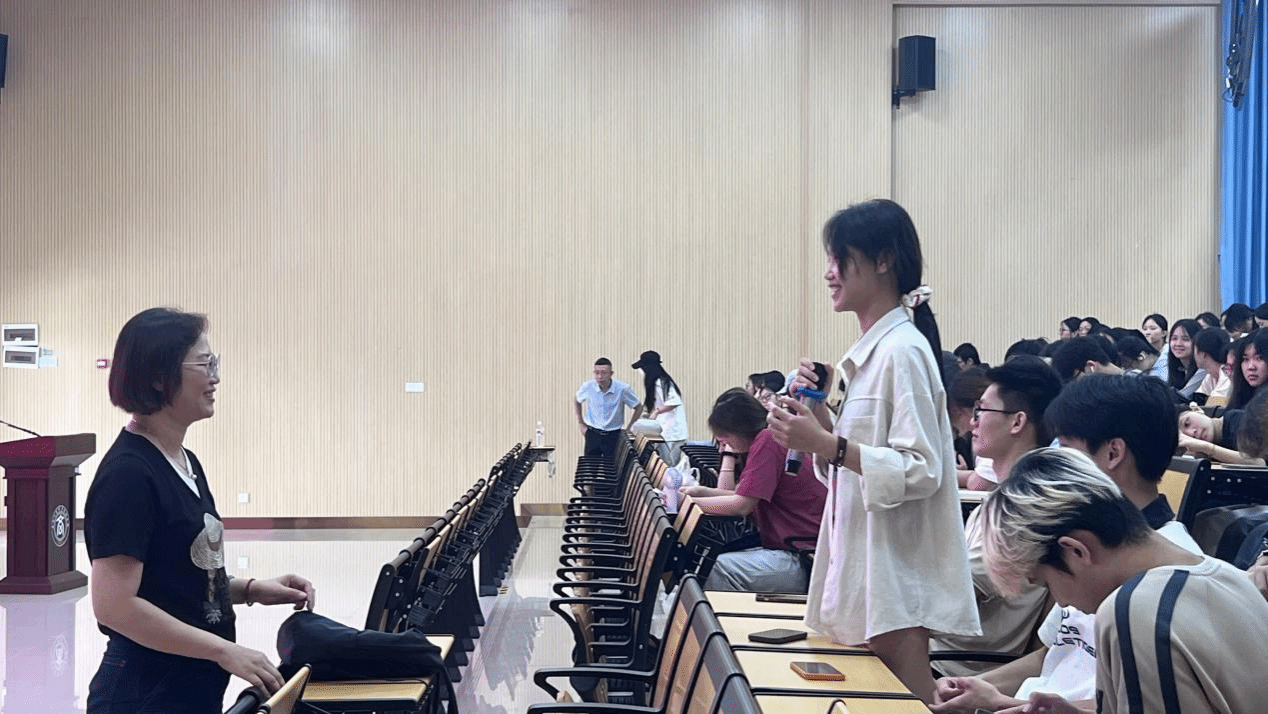 南寧市嘉燕商貿(mào)有限公司朱萍經(jīng)理與學(xué)生互動(dòng)交流