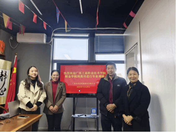 為響應(yīng)國家深化產(chǎn)教融合戰(zhàn)略部署,推動職業(yè)教育與區(qū)域產(chǎn)業(yè)協(xié)同發(fā)展,2025年12月25日,廣西工商職業(yè)技術(shù)學(xué)院財金學(xué)院粟衛(wèi)紅院長、大數(shù)據(jù)與財務(wù)管理專業(yè)帶頭人文玉蘭及骨干教師雷英一行前往廣西老管家財稅服務(wù)有限公司進(jìn)行合作洽談。雙方圍繞“共構(gòu)課程體系、共建雙師團(tuán)隊、共享實踐資源、共研技術(shù)項目、共促學(xué)生就業(yè)等多個維度達(dá)成初步意向。