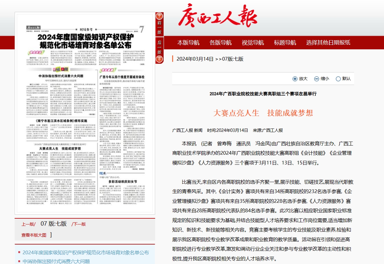 上一條: 【廣西新聞網(wǎng)】2024年廣西職業(yè)院校技能大賽高職組《人力資源服務(wù)》賽項(xiàng)比賽舉行