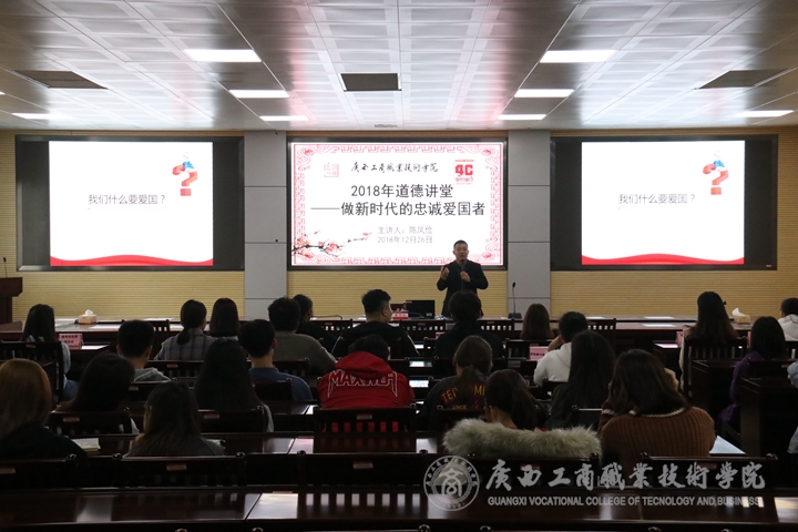 • 2018年12月26日下午,學(xué)院道德講堂于鵬飛校區(qū)2119視頻會議室舉辦。本次道德講堂由思政部副主任陳鳳儉主講。學(xué)院各社團(tuán)學(xué)生代表以及新聞中心部分成員參加了本次道德講堂。陳鳳儉以“做新時(shí)代的忠誠愛國者”為主題...