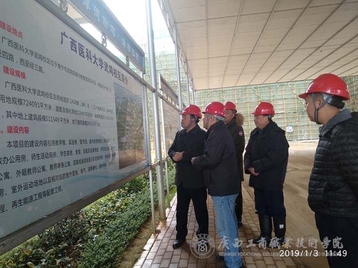 • 2019年1月3日上午,陳杰院長率隊(duì)前往武鳴,先后到廣西機(jī)電工程學(xué)校、廣西醫(yī)科大學(xué)、廣西工業(yè)職業(yè)技術(shù)學(xué)院等入駐南寧教育園區(qū)的兄弟院校武鳴校區(qū),進(jìn)行了參觀學(xué)習(xí)和交流。陪同前往的有李仕欽副院長,以及武鳴校區(qū)...