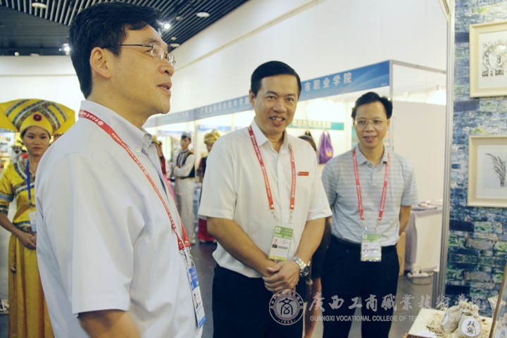 • 2015年9月19日,自治區(qū)高校工委書記、教育廳廳長秦斌、副廳長黃雄彪、職成處萬鋒鋒副處長等一行觀看東盟職教聯(lián)展。 13點(diǎn)時(shí),李副院長和區(qū)糧食局韋尚英處長一同接待了秦斌廳長到我院展位參觀。李副院長為秦廳長介...