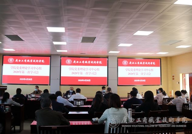 • 2020年4月28日上午,學(xué)院黨委理論學(xué)習(xí)中心組2020年第一次學(xué)習(xí)會在鵬飛校區(qū)2119會議室召開。學(xué)院黨委書記覃武云主持學(xué)習(xí)會并作中心發(fā)言,院長李維、黨委副書記蒙啟成、副院長安仲文、副院長陳寧春、副院長闕勇平、...