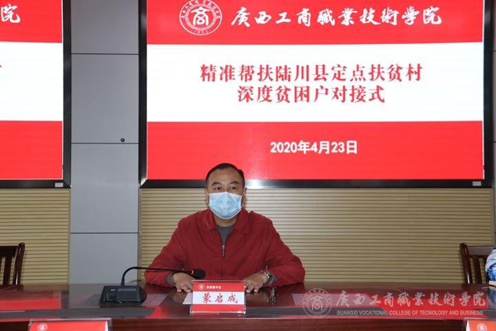 • 4月23日上午,廣西工商職業(yè)技術(shù)學(xué)院在鵬飛校區(qū)視頻會議室舉辦精準幫扶陸川縣定點扶貧村深度貧困戶對接會議,學(xué)院黨委副書記蒙啟成出席會議,學(xué)院組織部、工會和自愿參與精準結(jié)對幫扶工作的單位、部門、小組代表參...