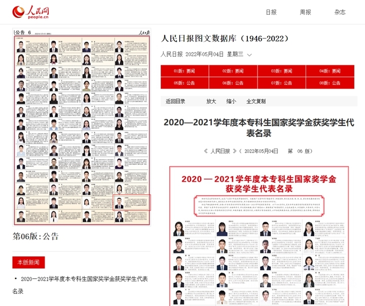• 新時代是追夢者的時代,也是廣大青少年成就夢想的時代。近日,人民日報刊登了2020—2021學(xué)年度本專科生國家獎學(xué)金獲獎學(xué)生代表名錄,共有100名各省(自治區(qū)、直轄市、計劃單列市)和各高校推薦評選出的本??茋要?..
