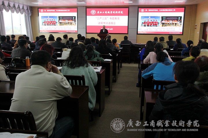 • 2015年12月16日下午2點40分我院在2119教室召開“三嚴三實”專題教育進展情況通報會。學院黨委書記覃武云、學院院長陳杰、副廳級調(diào)研員黃永蓬和學院全體在職黨員、學院副高職稱及以上教師、學院教代會代表等參加了...