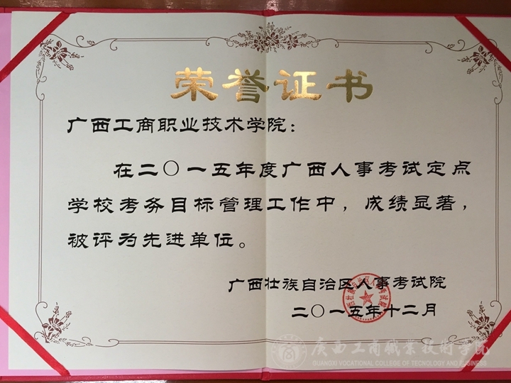 • 12月24日,從廣西區(qū)人事考試院傳來喜訊,我院在2015年度全區(qū)人事考試定點學校考務目標管理工作中,成績突出,被評為先進工作單位。 2015年,我院共承接五次廣西人事考試院考試,分別是全國二級建造師執(zhí)業(yè)...