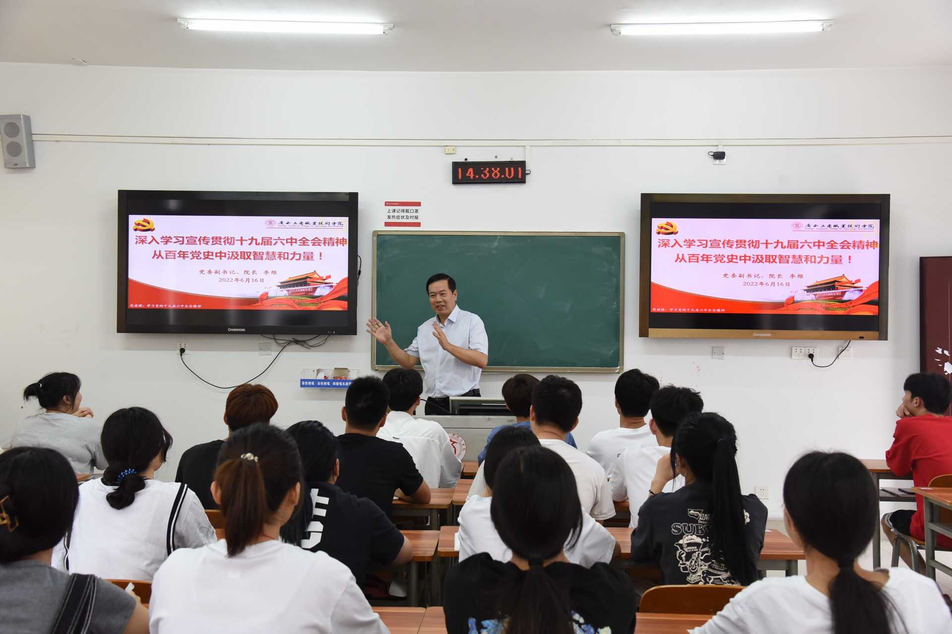 • 6月16日下午,學(xué)院黨委副書記、院長(zhǎng)李維在鵬飛校區(qū)為21級(jí)室內(nèi)專業(yè)學(xué)生講授題為《深入學(xué)習(xí)宣傳貫徹十九屆六中全會(huì)精神——從百年黨史中汲取智慧和力量》的思政課。李維院長(zhǎng)從為什么要做這個(gè)《決議》——總結(jié)黨的百...