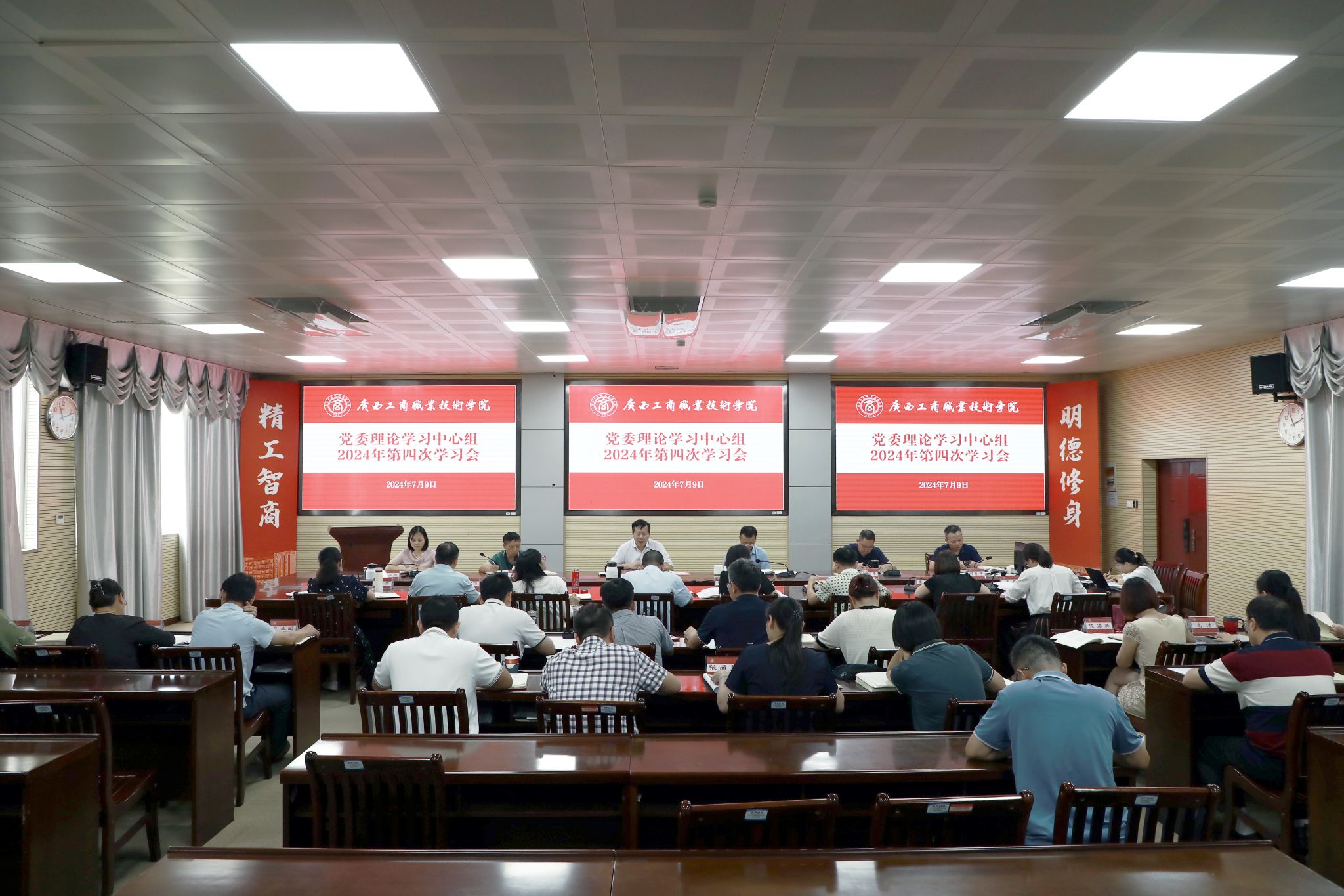 • 7月9日,我校召開黨委理論學習中心組2024年第四次學習會,重點圍繞習近平總書記關(guān)于廣西工作論述的重要要求、《中國共產(chǎn)黨紀律處分條例》等內(nèi)容開展學習研討。學校黨委書記李維主持會議并講話。(學習會現(xiàn)場)副...
