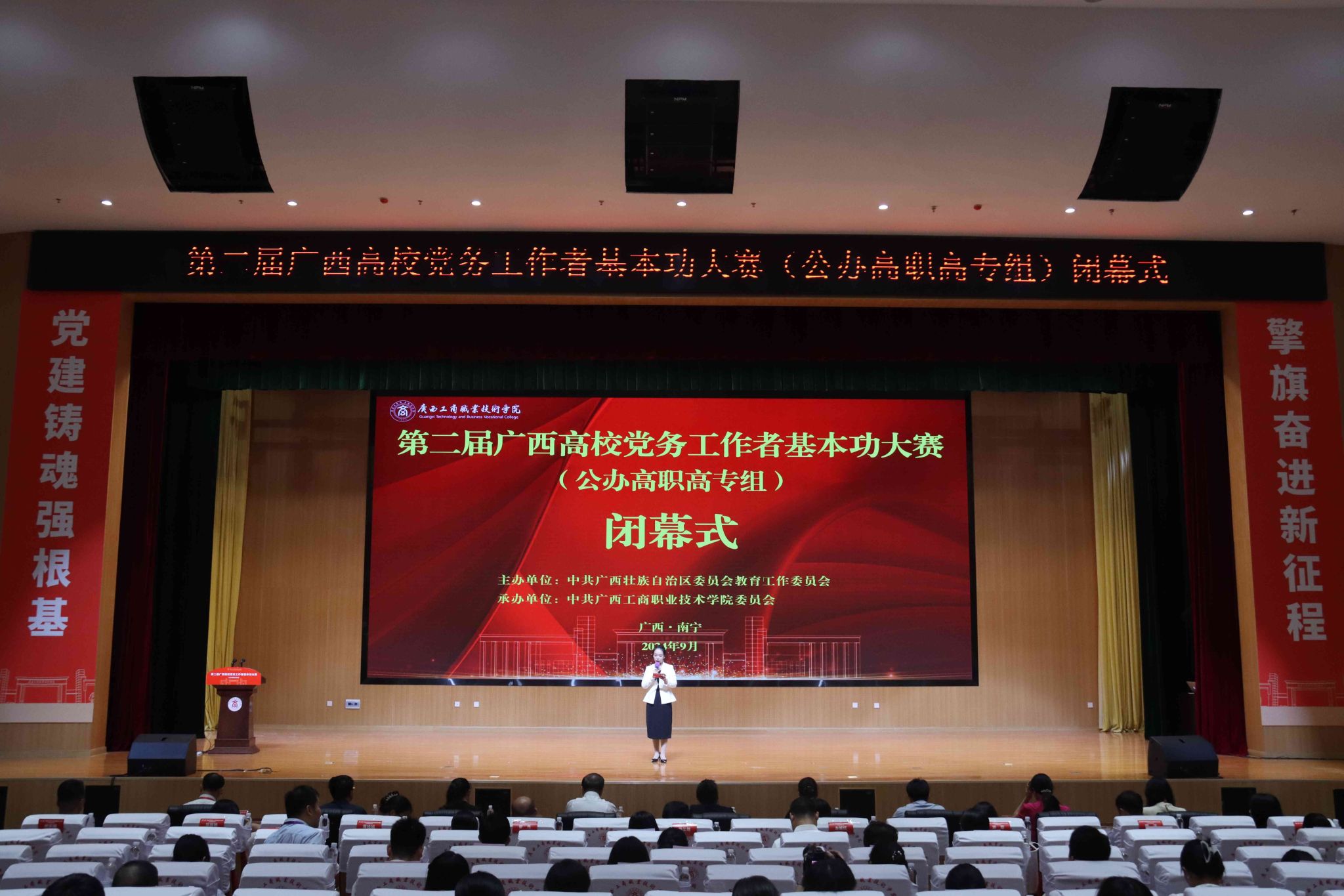• 9月19日至20日,第二屆廣西高校黨務工作者基本功大賽(公辦高職高專組)比賽在我校武鳴校區(qū)舉行。我校選派的馬克思主義學院教師覃田、經(jīng)貿(mào)學院教師梁莉莉、管理學院教師楊淑英三位老師分別榮獲教師黨支部書記組、...