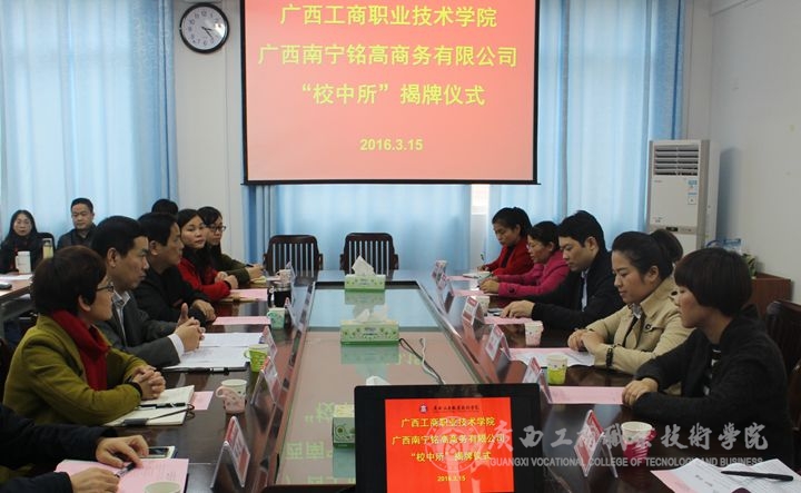 • 2016年3月15日下午15:00,廣西工商職業(yè)技術學院會計系與廣西南寧銘高商務有限公司舉行了“校中所揭牌儀式”,揭牌儀式在328實訓室進行。我院副院長李維、教務科研處處長韋勝強、會計系主任鄭華、財信系副主任張...