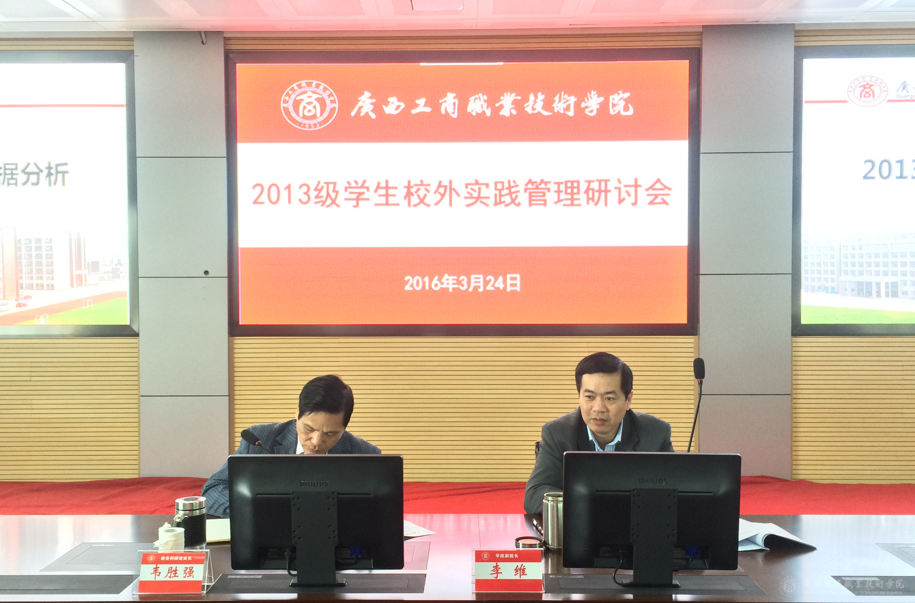 • 2016年3月24日上午,教務科研處處長韋勝強在校本部2119會議室主持召開了2013級學生校外實踐管理研討會,學院李維副院長、黨委學生工作部及各系部相關負責人,教務科研處有關人員出席了會議。 ...