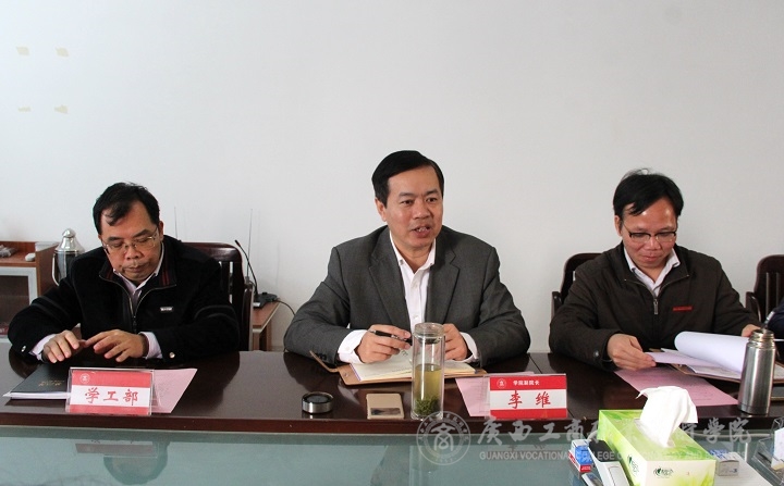 • 新年伊始,學(xué)院于2017年1月3日下午召開(kāi)安全工作專(zhuān)題匯報(bào)會(huì),學(xué)院黨委書(shū)記覃武云,院長(zhǎng)陳杰,副書(shū)記、紀(jì)委書(shū)記蒙啟成,副院長(zhǎng)李仕欽,李維,陳寧春及相關(guān)部門(mén)主要負(fù)責(zé)人參加會(huì)議。會(huì)議由陳杰院長(zhǎng)主持。 ...