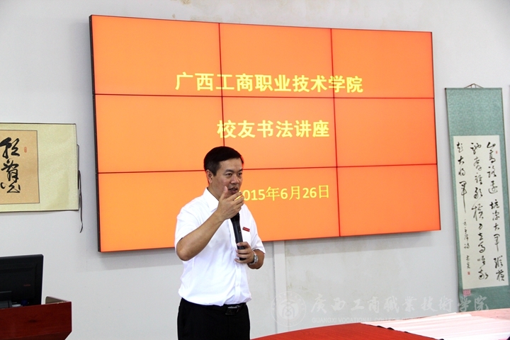 • 2015年6月26日下午,我院在校本部教學(xué)樓2514創(chuàng)業(yè)實(shí)訓(xùn)中心召開校慶日校友書法講座。原財(cái)會(huì)792班校友、中國(guó)書法家協(xié)會(huì)理事、廣西書法家協(xié)會(huì)常務(wù)副主席劉德宏,原計(jì)統(tǒng)821班校友,自治區(qū)糧食局人事處處長(zhǎng)韋尚英,學(xué)院...