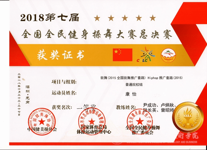 • 2018年10月22日—27日,由國(guó)家體育總局立項(xiàng),國(guó)家體育總局體操管理中心和中國(guó)健美操協(xié)會(huì)主辦的2018年第七屆全國(guó)全民健身操舞大賽全國(guó)總決賽在深圳市龍崗區(qū)順利舉辦。在所參加的三個(gè)比賽項(xiàng)目中,我院健身操舞代表...