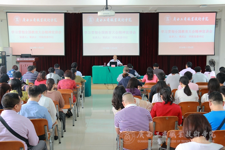 • 11月6日下午,學(xué)院于鵬飛校區(qū)報(bào)告廳召開學(xué)習(xí)貫徹全國(guó)教育大會(huì)精神宣講會(huì)。學(xué)院全體教師(含“雙肩挑”教師)、各系學(xué)生代表參加宣講會(huì)。本次宣講會(huì)由學(xué)院黨委書記覃武云主講。覃武云書記從全國(guó)教育大會(huì)的背景展開...